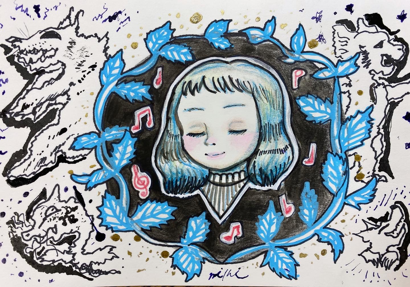 展示会で出展したはがきサイズのドローイング原画です。