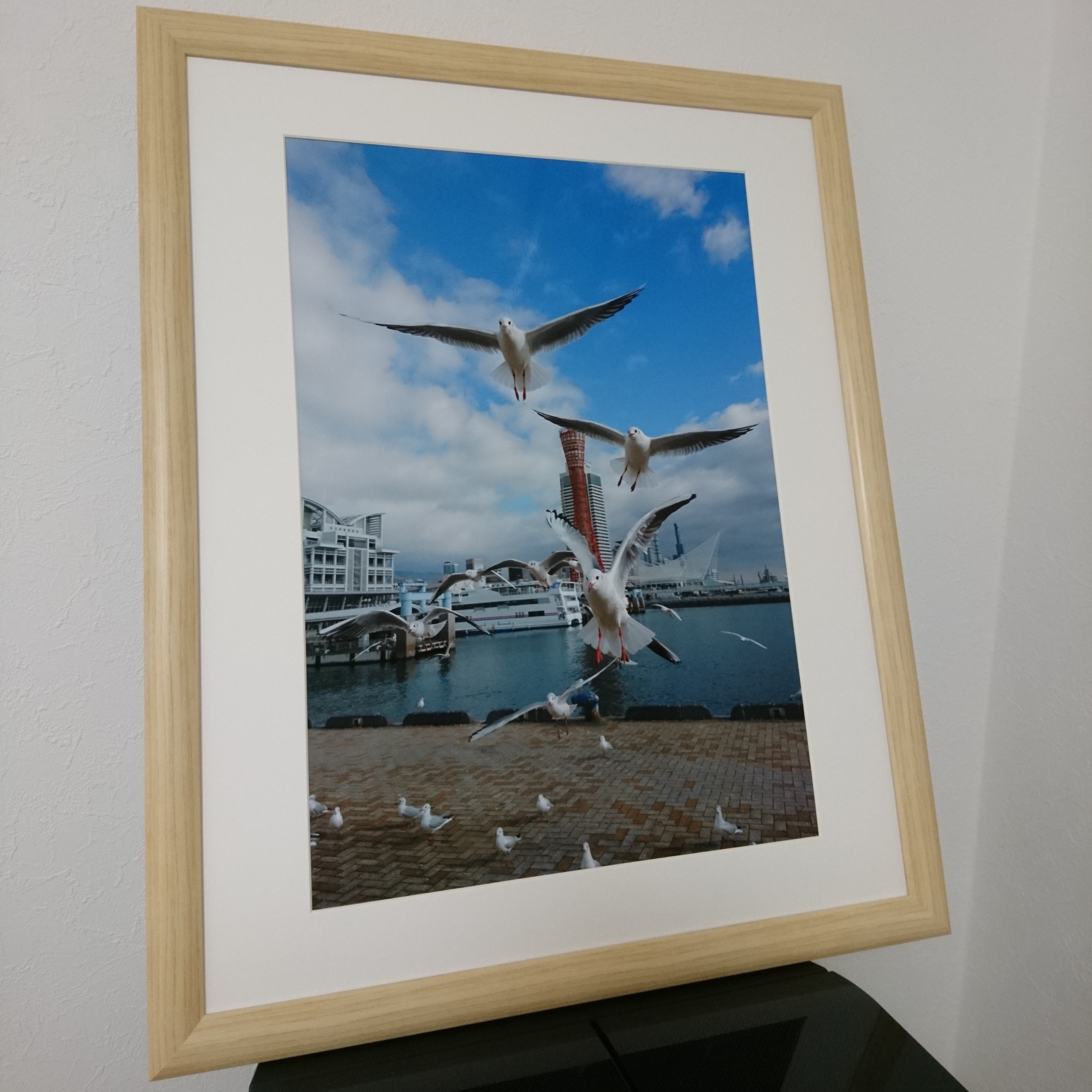 みなと神戸に咲き誇るユリカモメ達を出来る限りの臨場感で表現するために、サイズはフチなしA3縦にさせて頂きました。