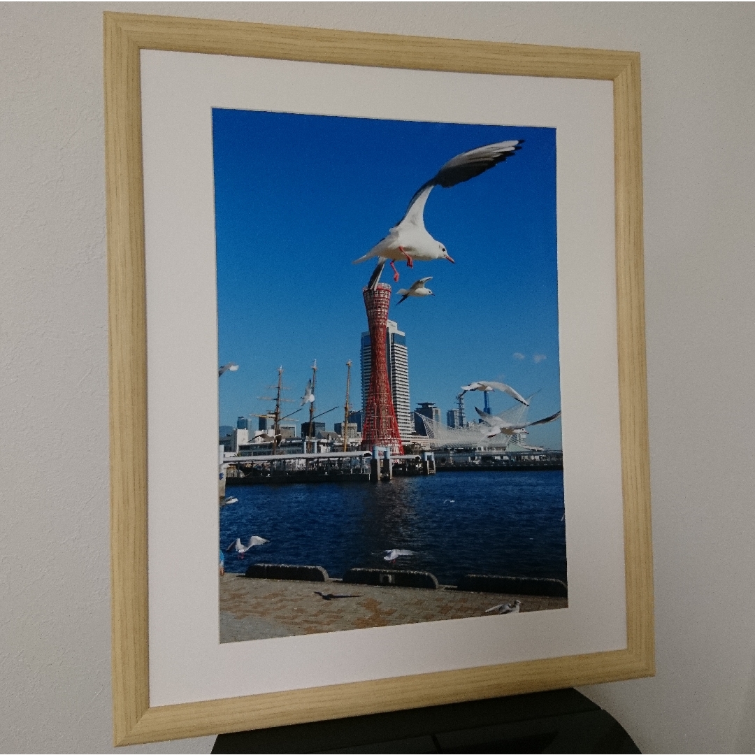 みなと神戸に咲き誇るユリカモメ達を出来る限りの臨場感で表現するために、サイズはフチなしA3縦にさせて頂きました。