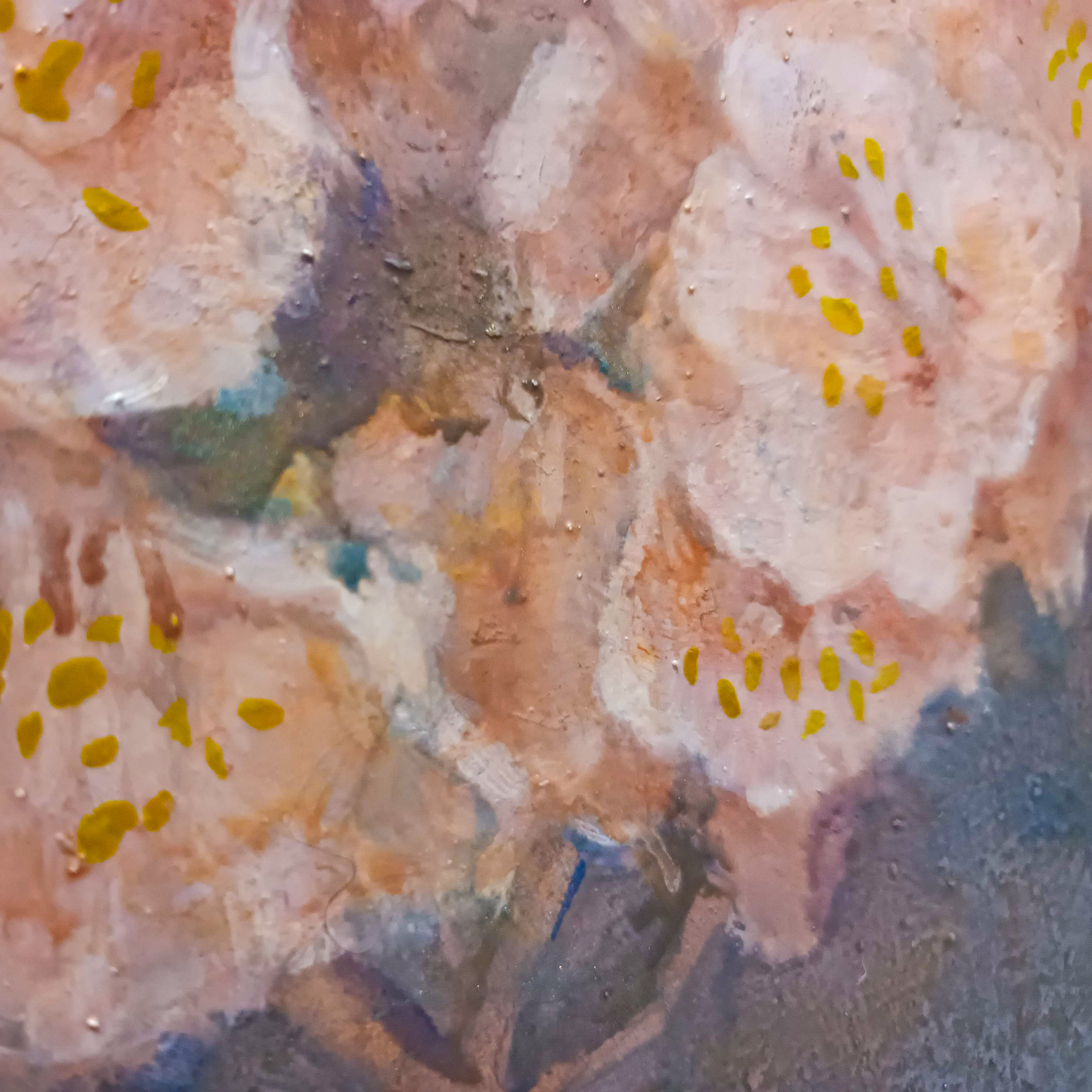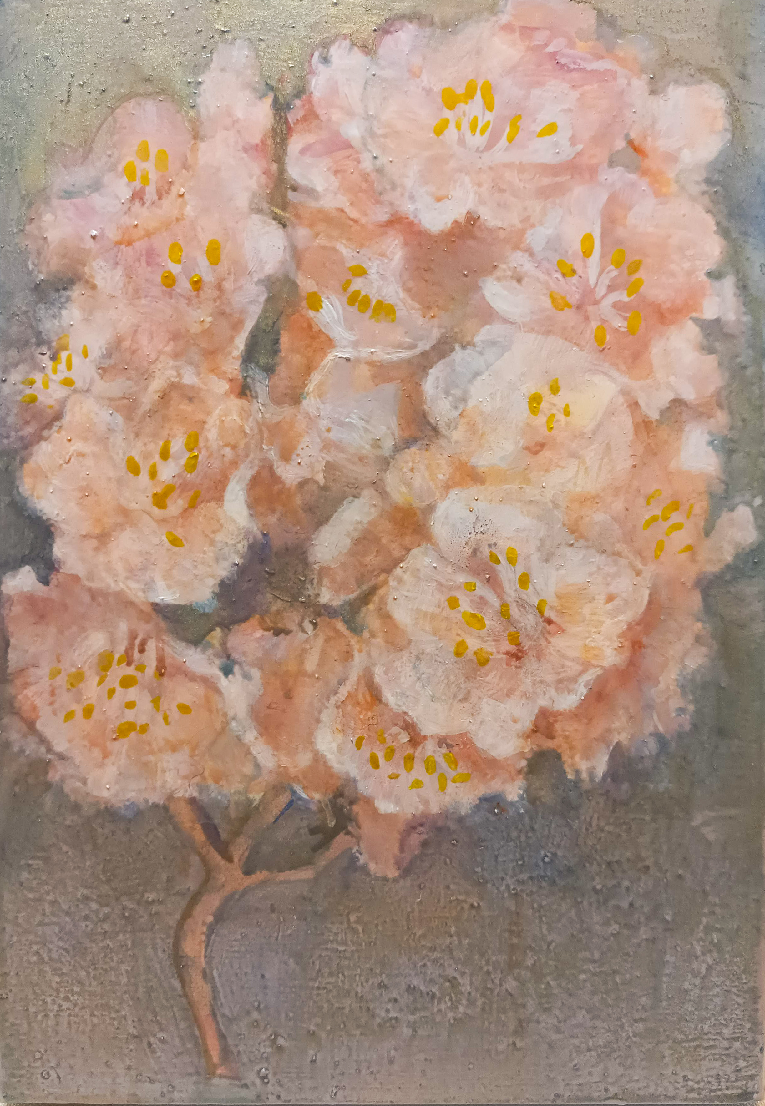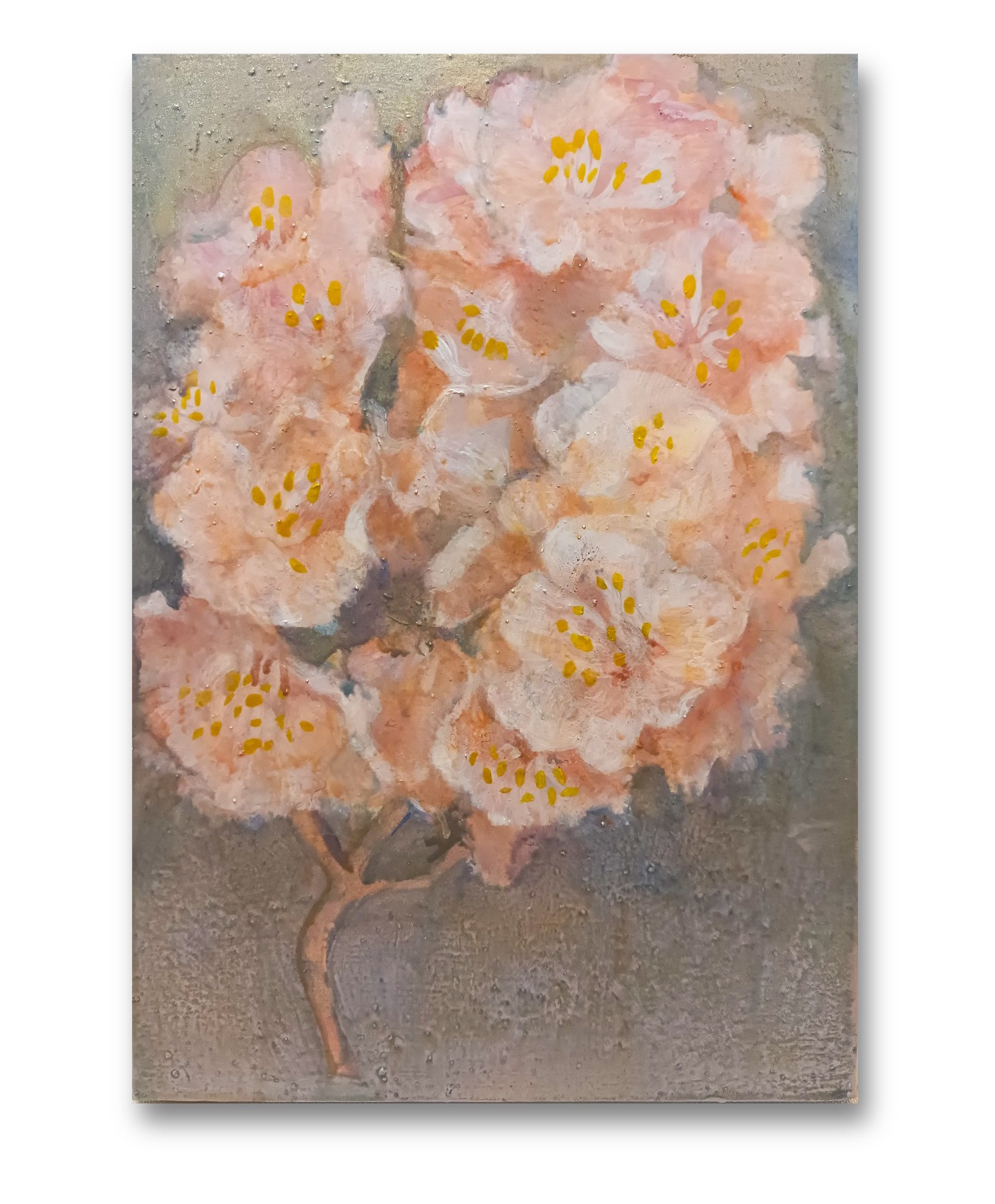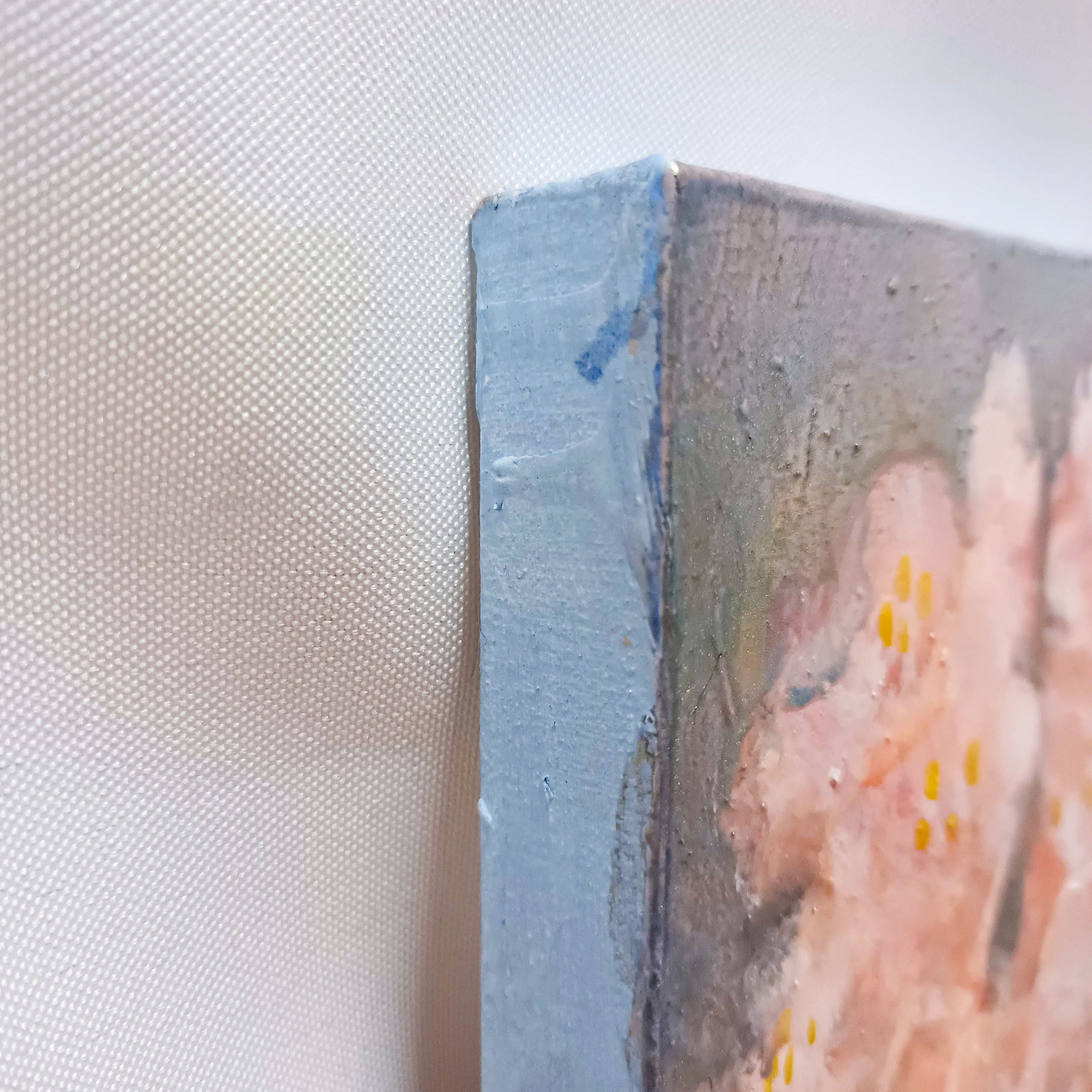 小さな手のひらサイズのキャンバスに桜の花を描きました。