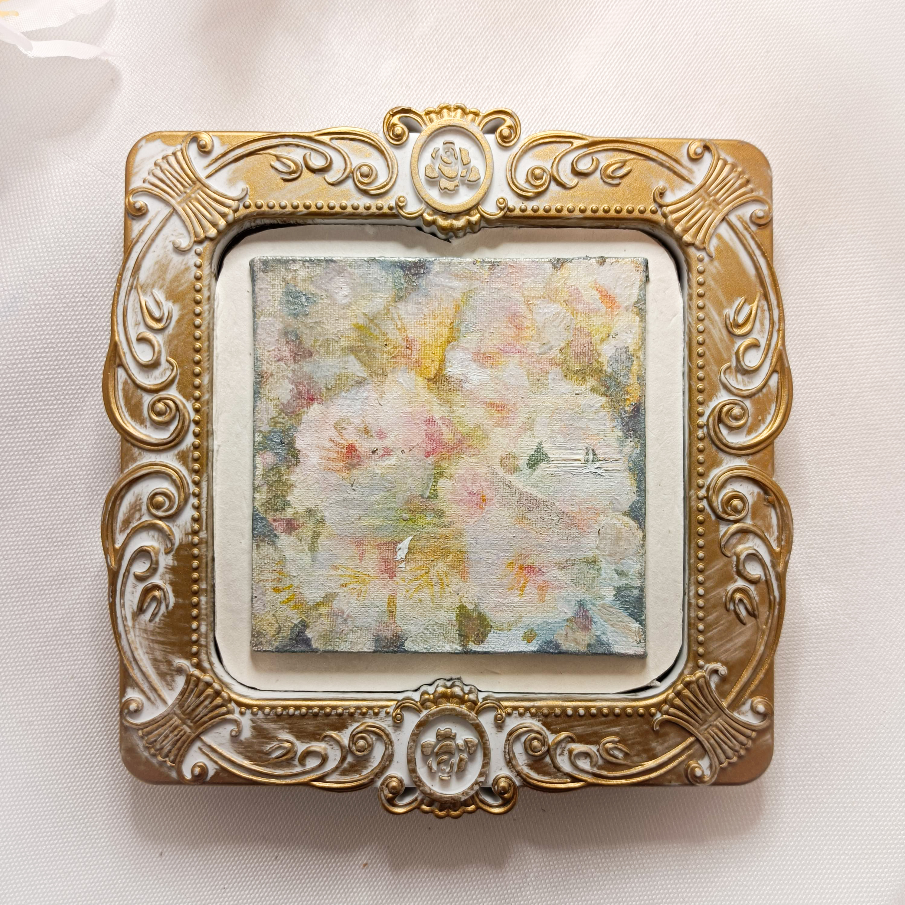 掌サイズで飾りやすい。ミニサイズの絵画です。