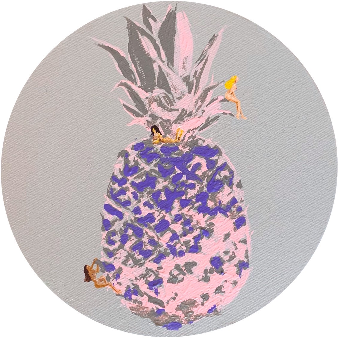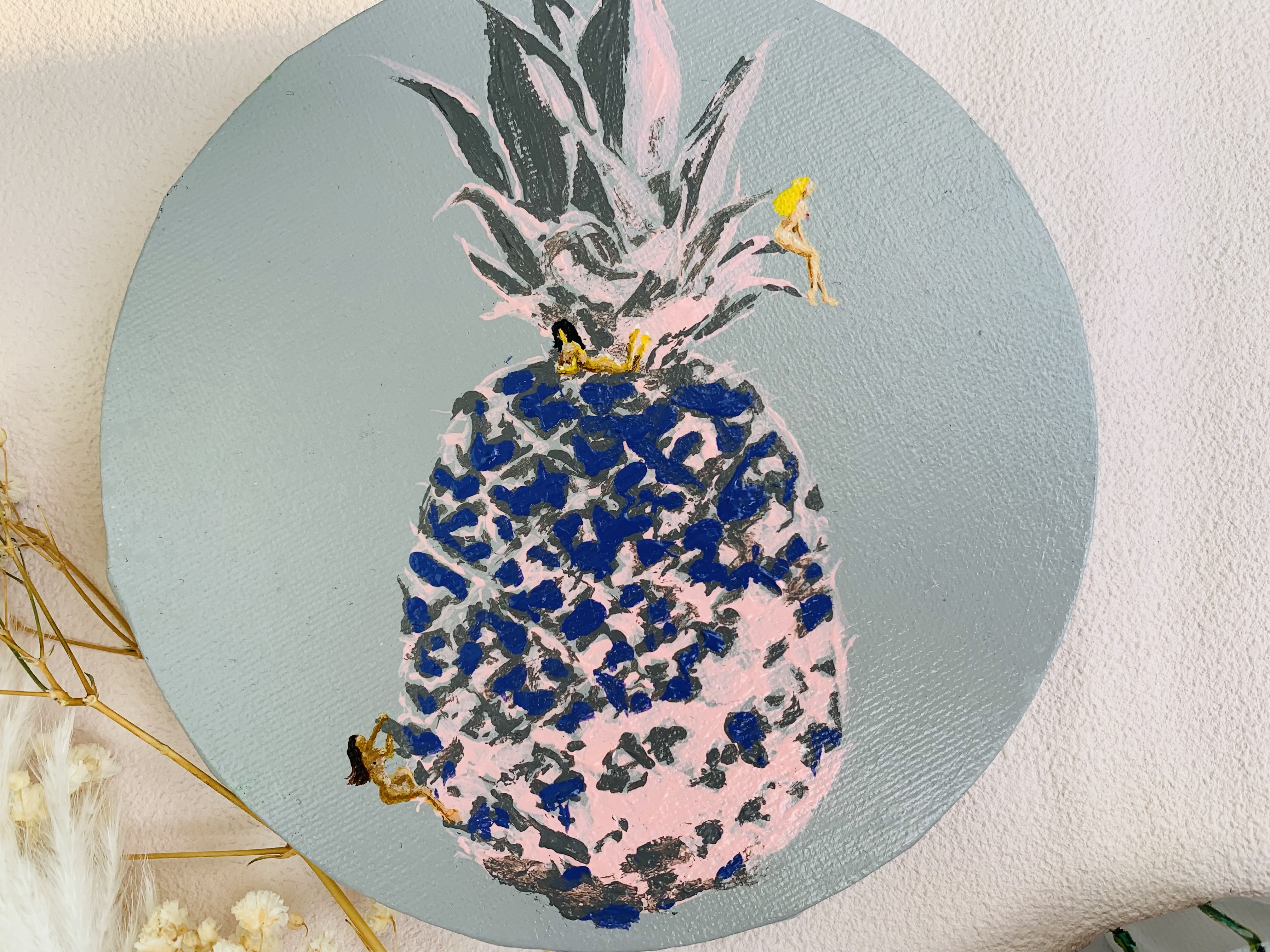 アクリル絵の具使用 額縁なし こちらは円形のキャンバスになります (直径15cm) 側面も着彩してあるので、そのまま飾っていただけます。 仕上げにワニスを使用しております。 こちらは原画となりますので、1点のみの販売です。 (送料込)