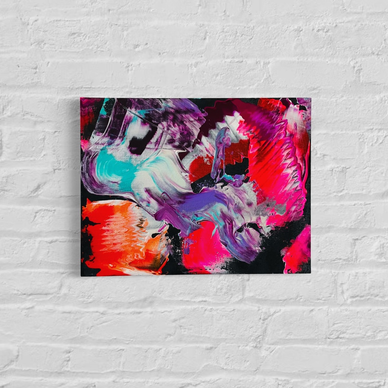 熱帯魚の色彩に魅了されインスピレーションを受けた作品。 鮮やかなビビットカラーの熱帯魚を抽象的に表現し黒背景で強調。 お部屋や事務所などの空間のアクセント。