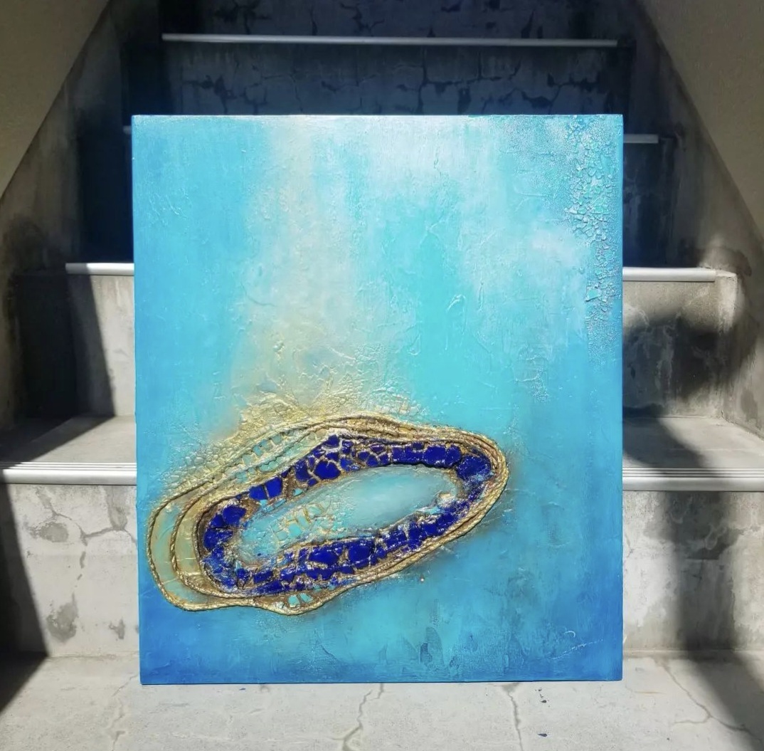 こちらの作品は青の中にある青、同系色で表現してみました。