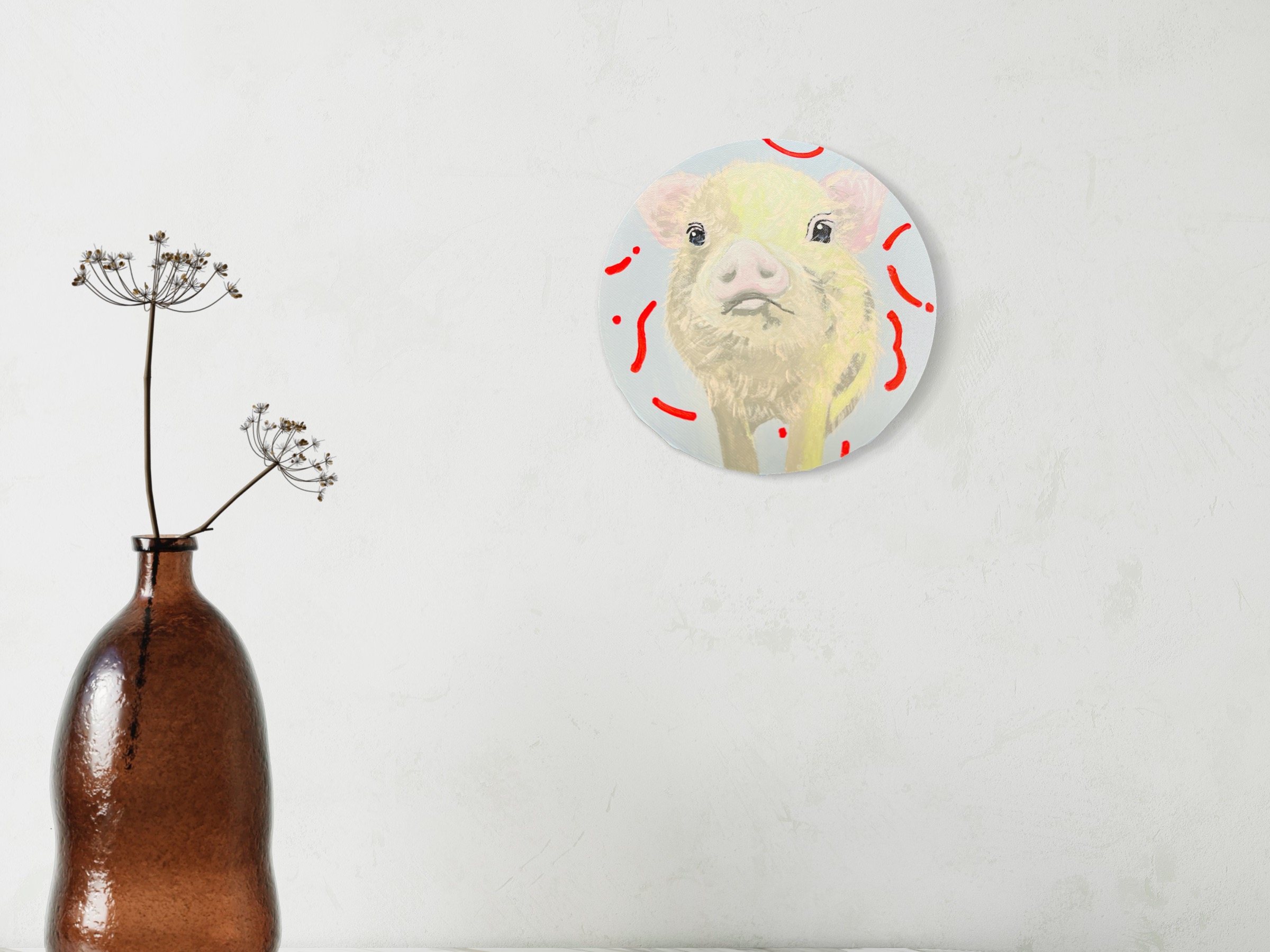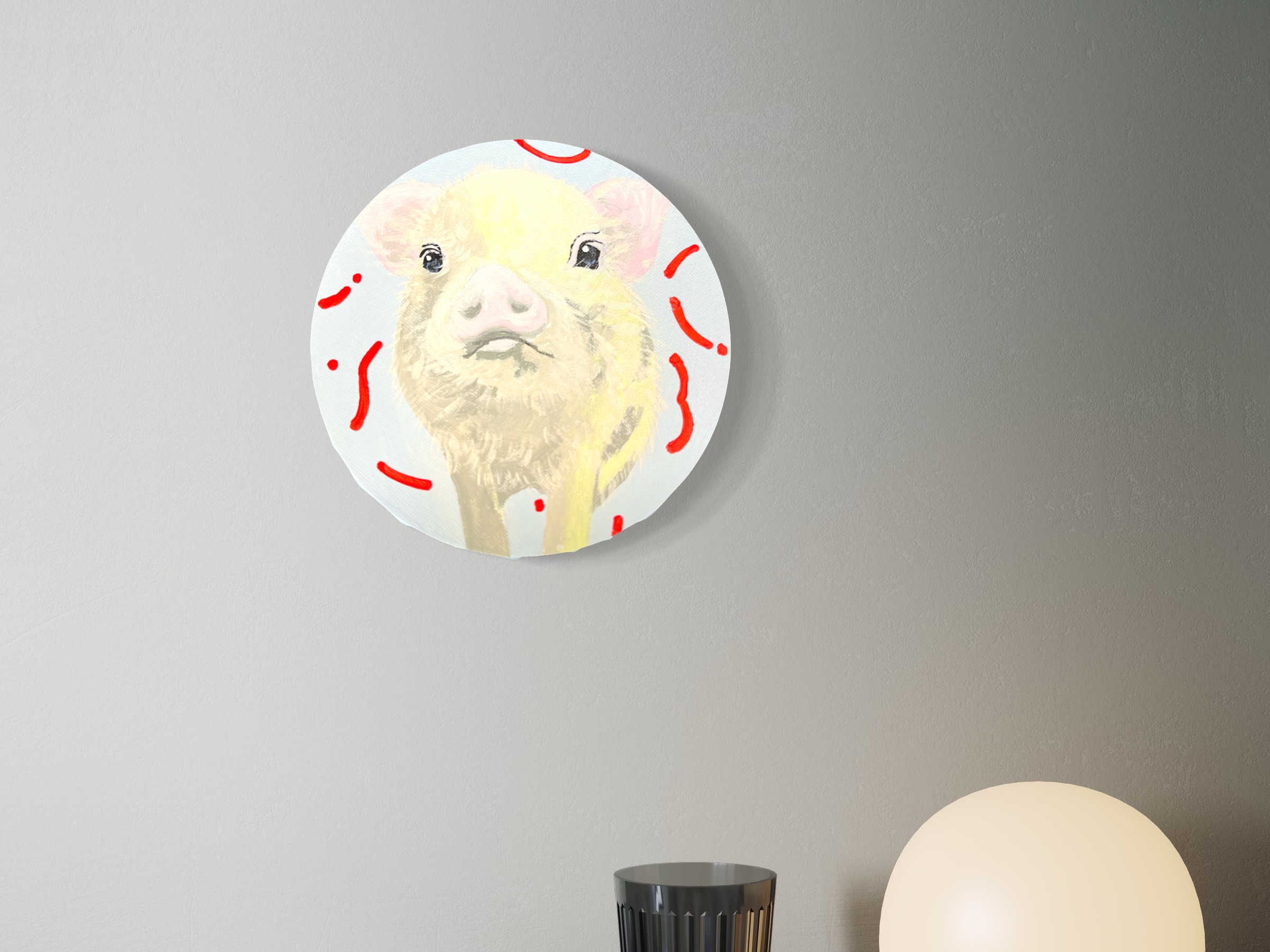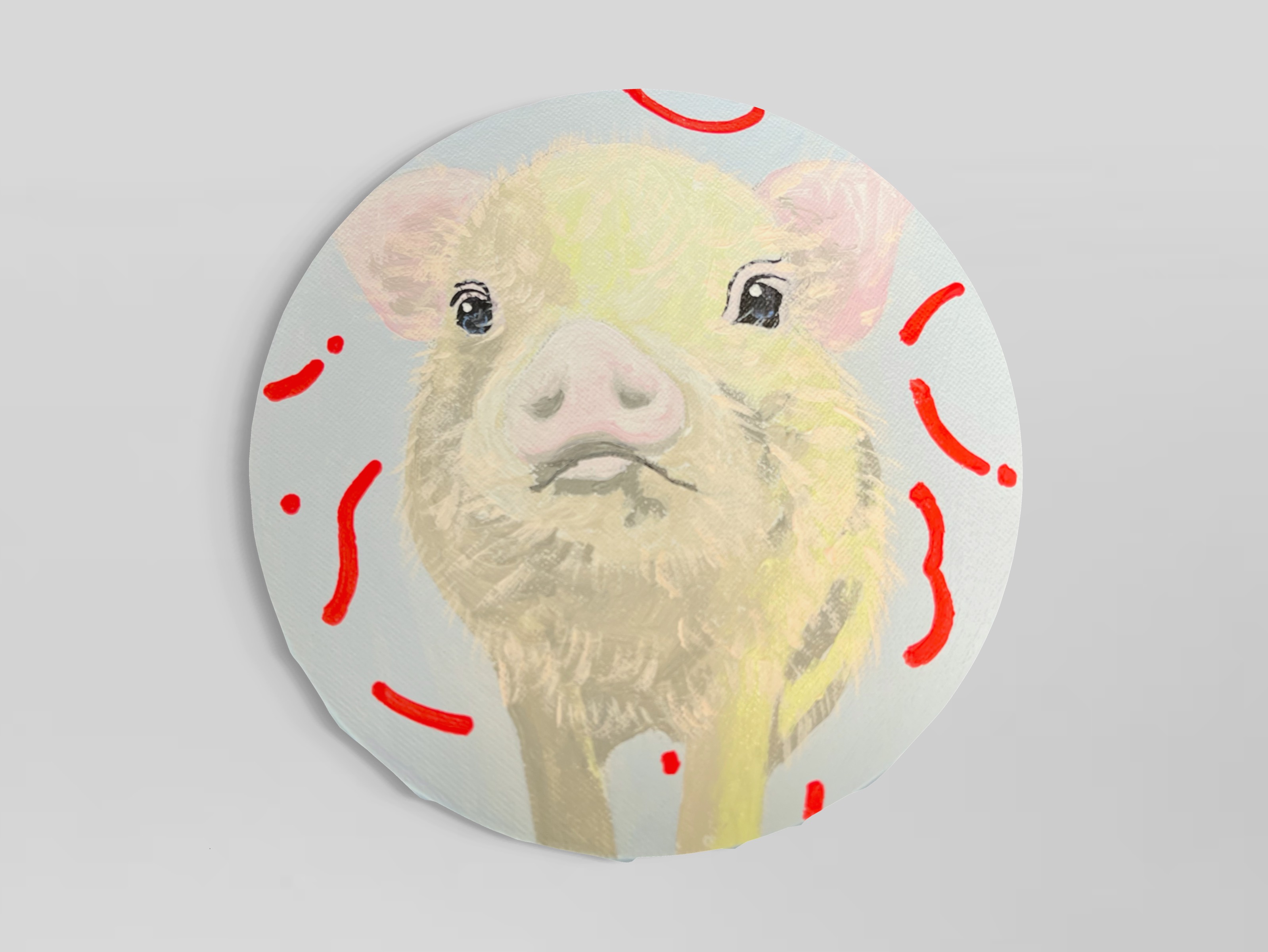 2024年制作。額縁なし。 アクリル絵の具使用。 こちらは原画となりますので、1点のみの販売です。(送料込) 円形のキャンバスになります (直径15cm) 。側面も着彩してあるので、そのまま飾っていただけます。仕上げにワニスを使用しております。 ご購入された方にはメッセージ付きオリジナルステッカーをお付けいたします。