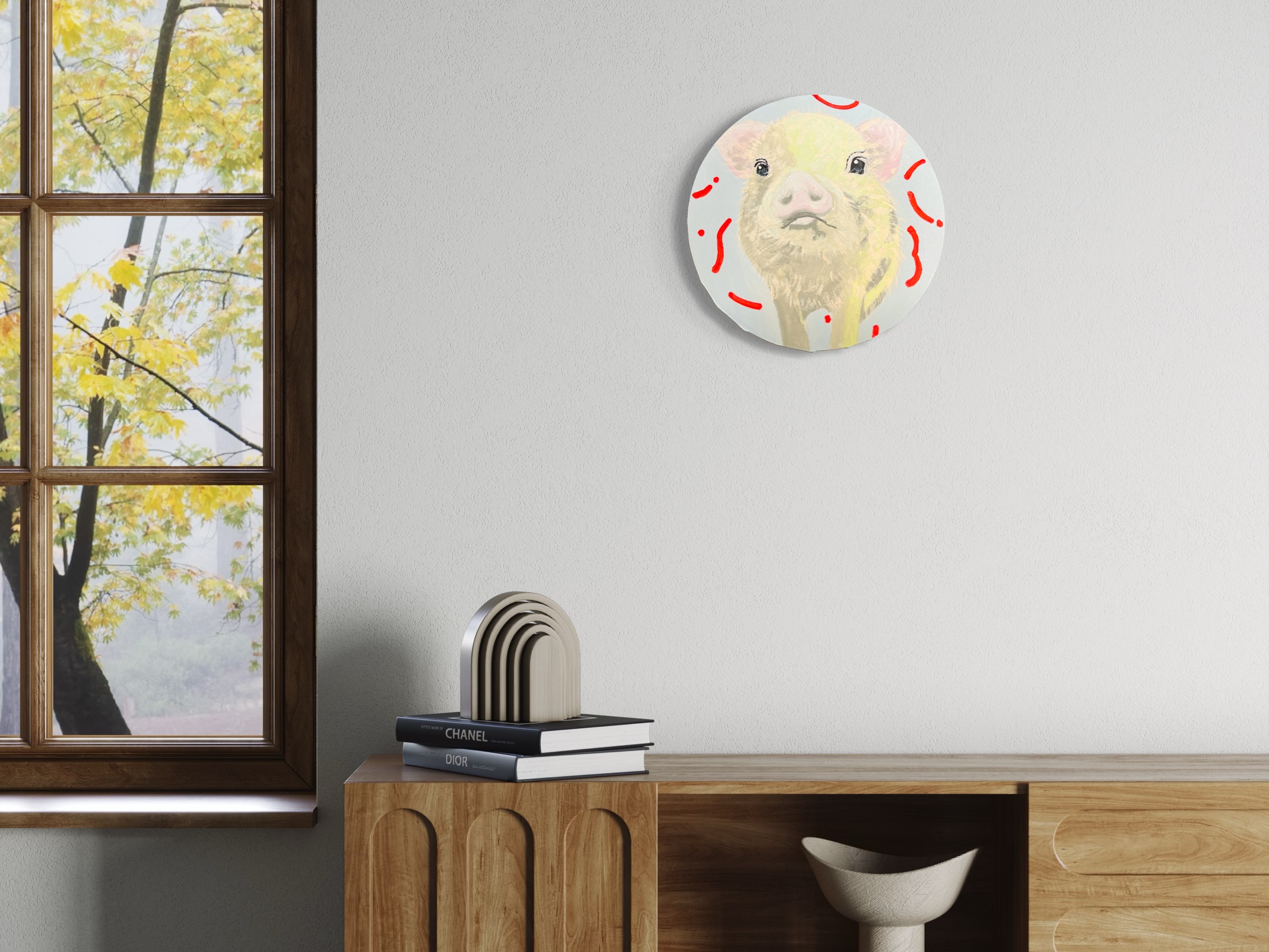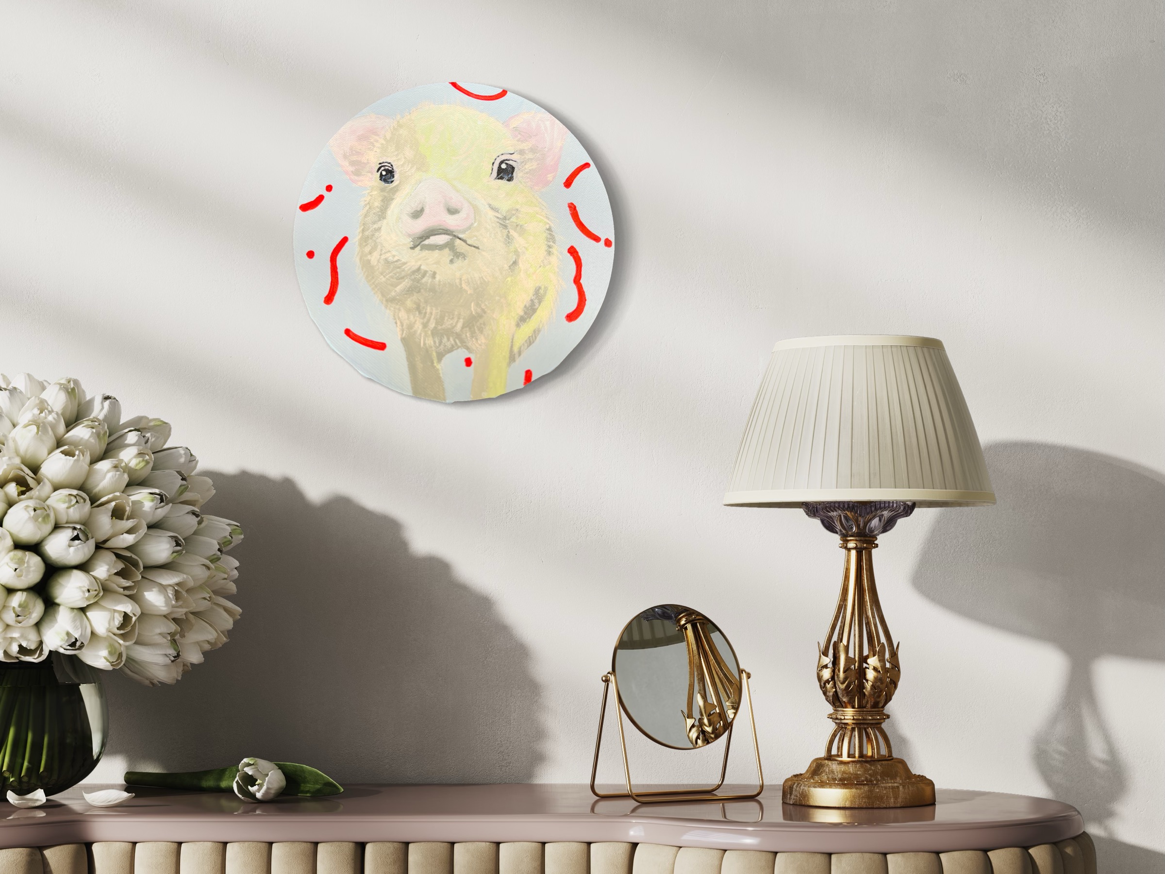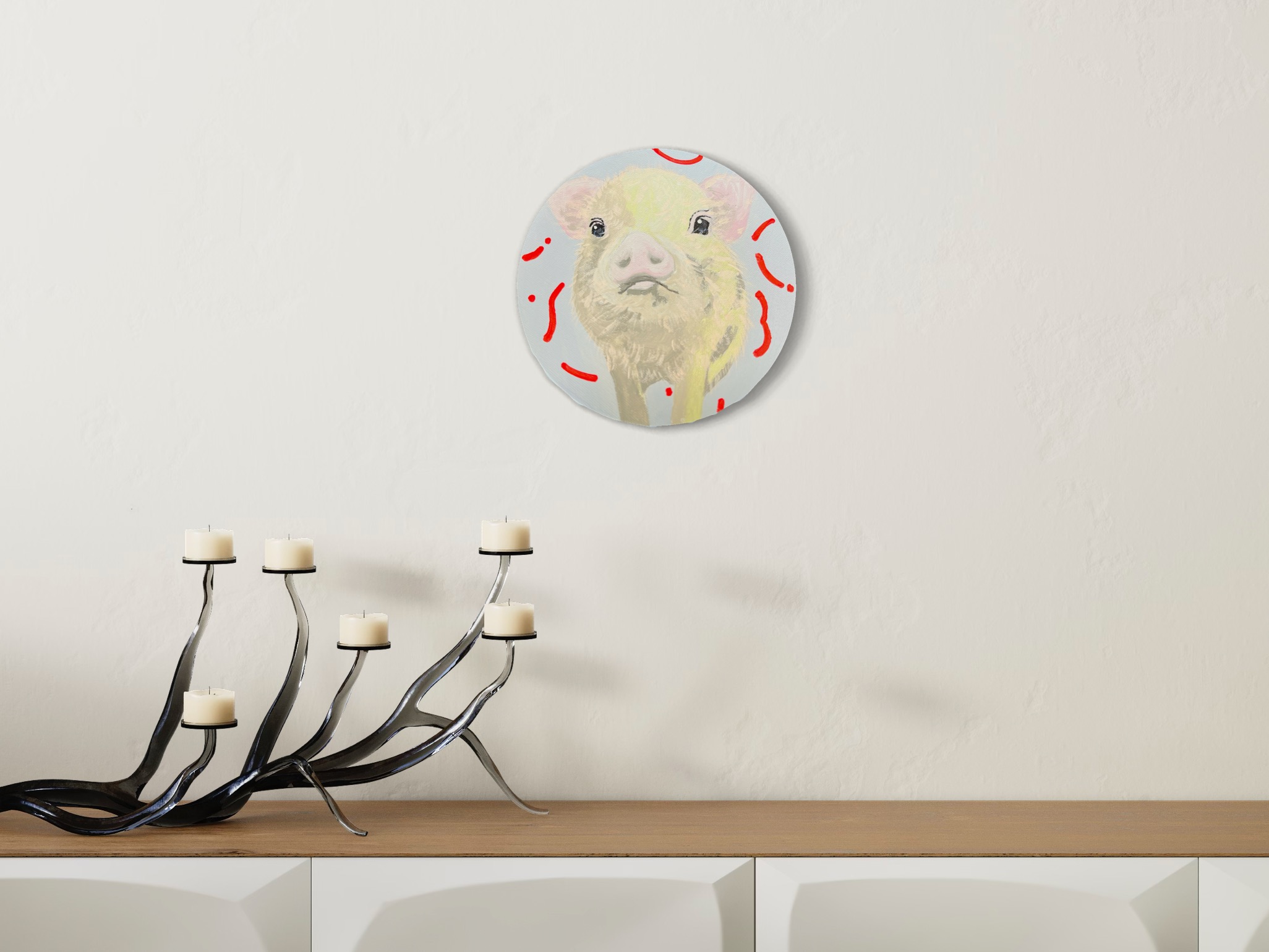 2024年制作。額縁なし。 アクリル絵の具使用。 こちらは原画となりますので、1点のみの販売です。(送料込) 円形のキャンバスになります (直径15cm) 。側面も着彩してあるので、そのまま飾っていただけます。仕上げにワニスを使用しております。 ご購入された方にはメッセージ付きオリジナルステッカーをお付けいたします。