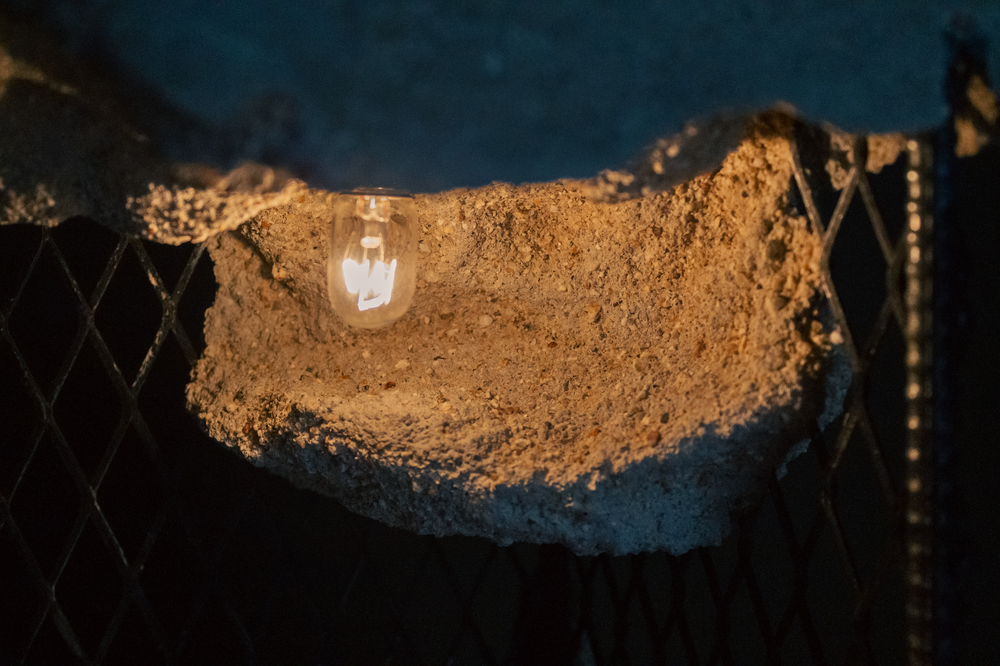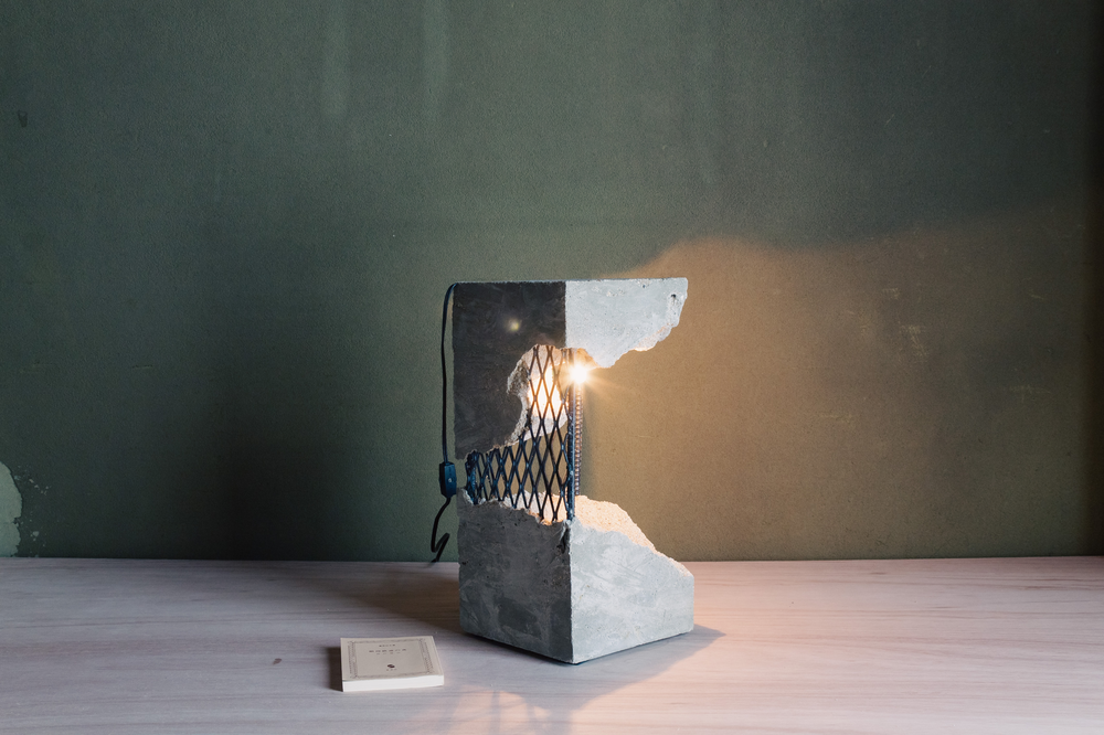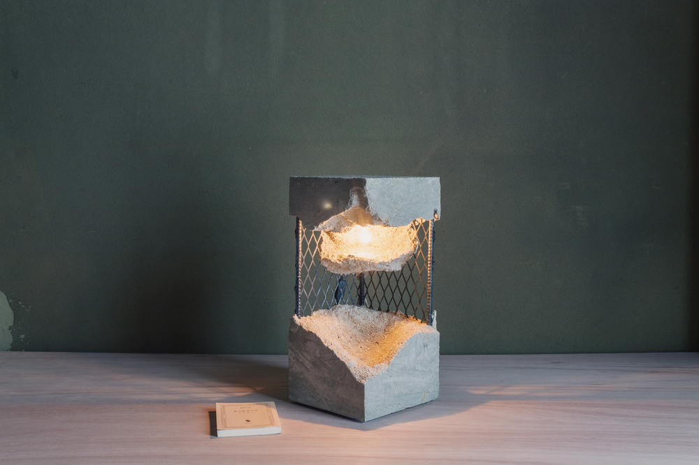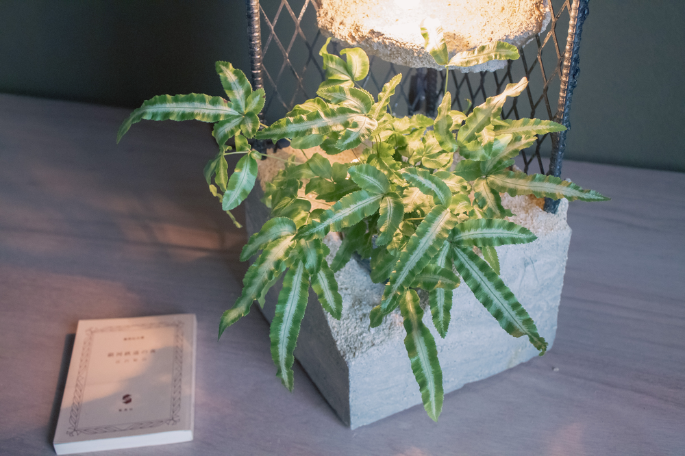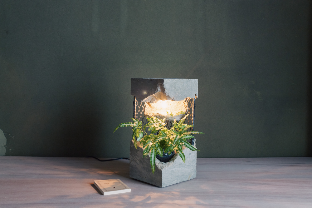 コンクリートでできたひんやりと冷たい照明&植木鉢。