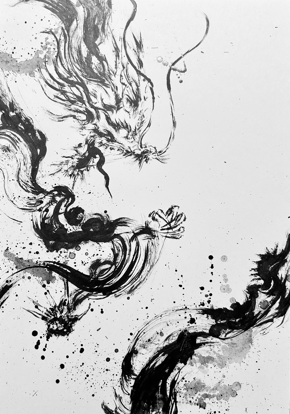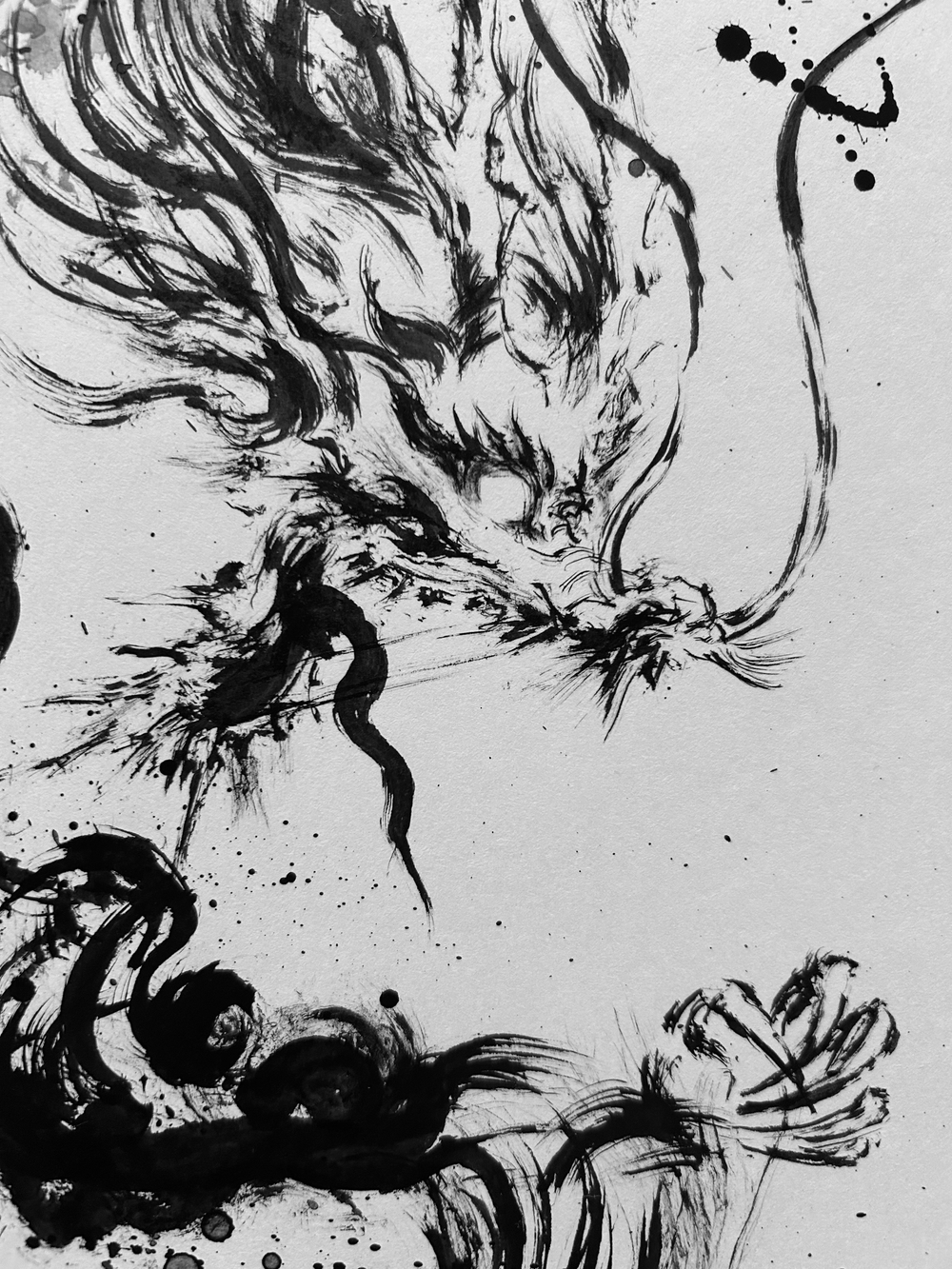 その為、胴体は鱗を描かず、川の流れのような"変化"を好む動きのある筆運びとなります。