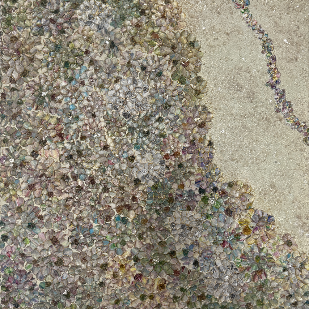 アクリル絵の具、モデリングペースト、テクスチャージェルを混ぜたものをペインティングナイフで描いています。