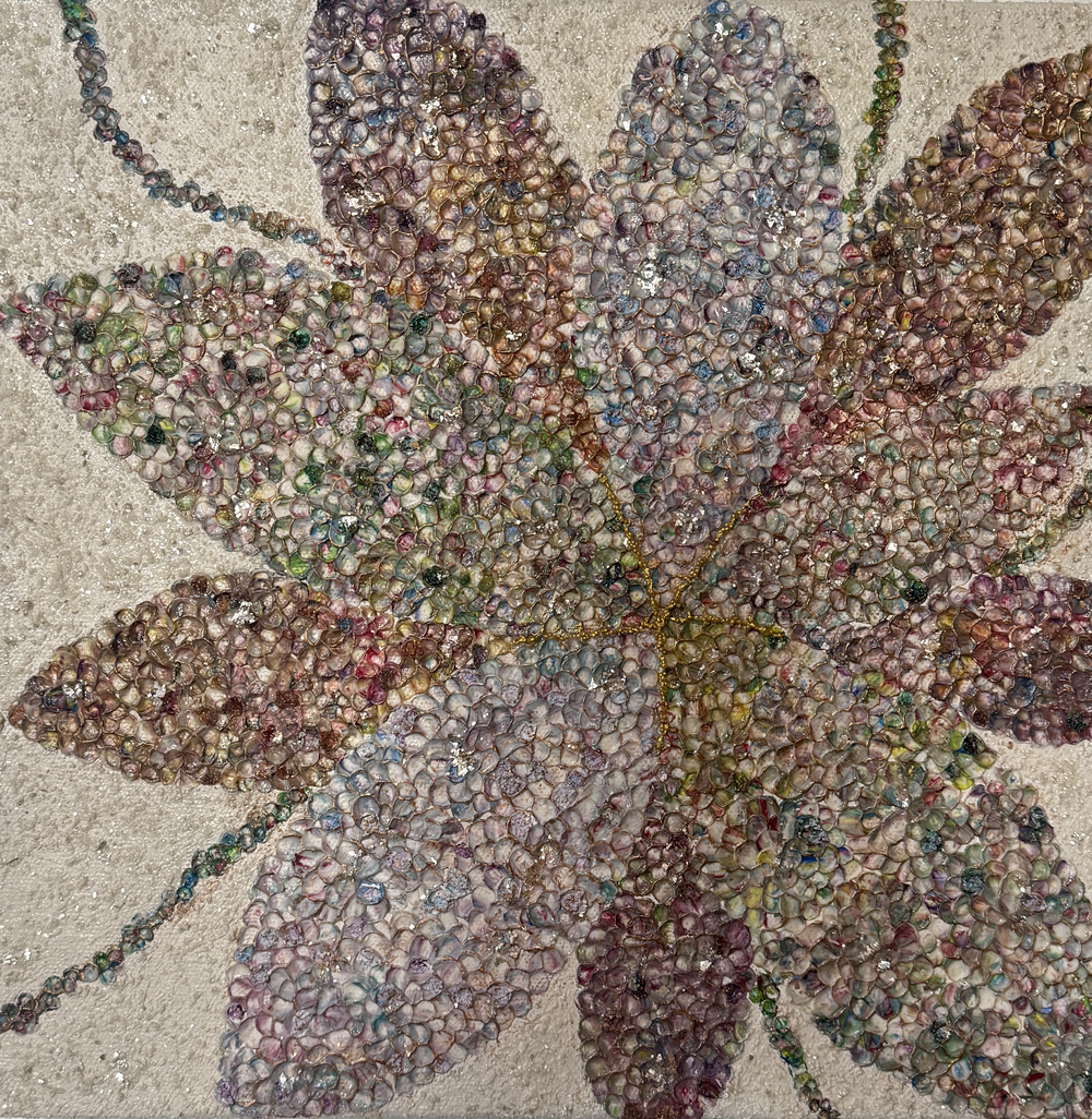 アクリル絵の具、モデリングペースト、テクスチャージェルを混ぜたものをペインティングナイフを使いキャンバスに描いています。