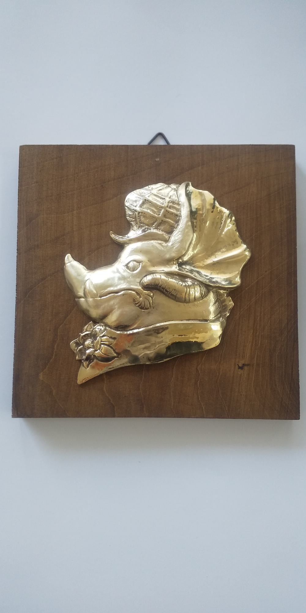 平らな一枚の真鍮板を金槌と鉄タガネを使って打ち出して制作しました
