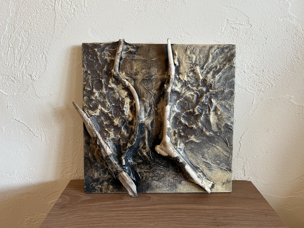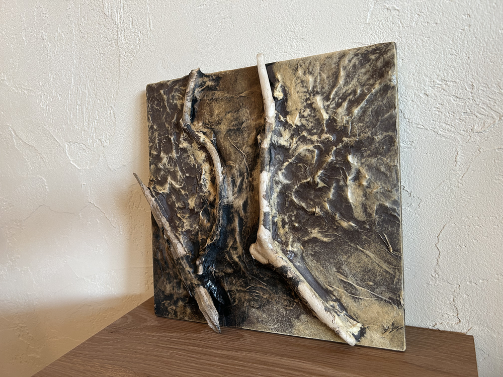 韓紙/流木/木粉粘土/こんにゃく糊/ニス/板