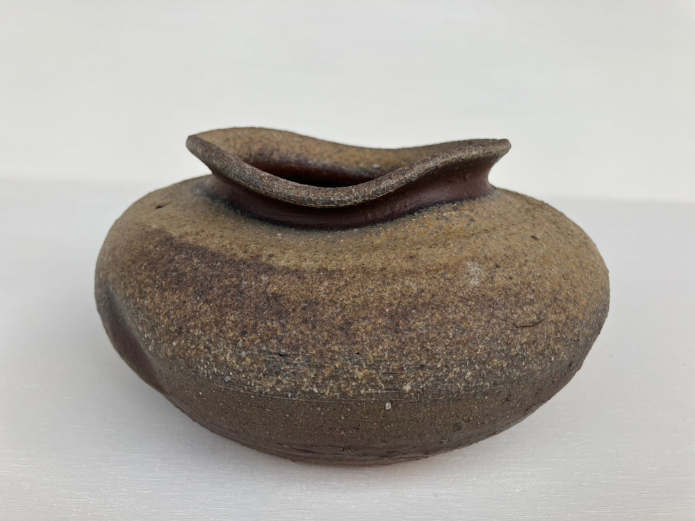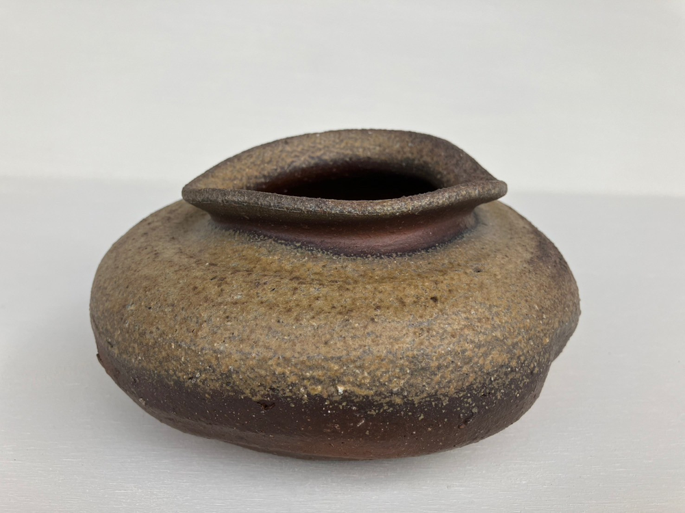 半地下式の穴窯で焼成した無釉焼締め陶の備前焼です。