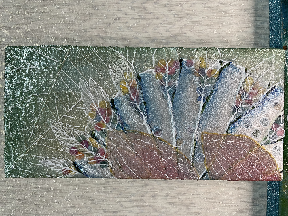 花鳥風月の二番目、鳥を表現しています。蓮の葉の上に鳥の羽を見立てて軽やかなイメージと、蓮の花の蕾の形をシンクロしてみました。